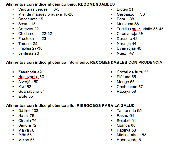 - Los alimentos de bajo índice glicémico son los ideales en la dieta del mexicano de la ciudad.