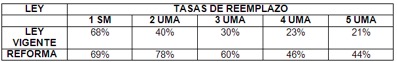 A. Las tasas de reemplazo (que son los porcentajes sobre el monto del último salario que constituyen el monto de la pensión), se incrementan de la siguiente manera: