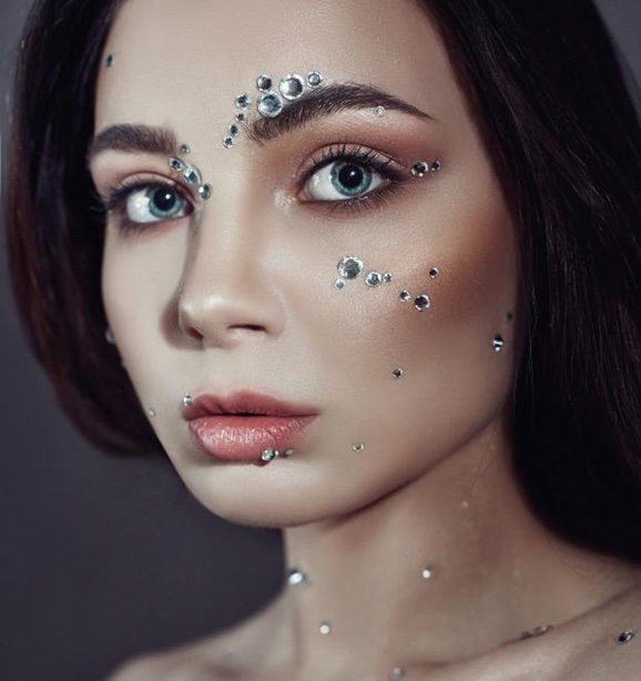 Otra de las tendencias que hemos visto en todos los desfiles de moda son las aplicaciones de strass sobre la piel, ya sea en la zona de las ojeras o en lo alto de los pómulos como a modo de eyeliner o en el párpado superior.